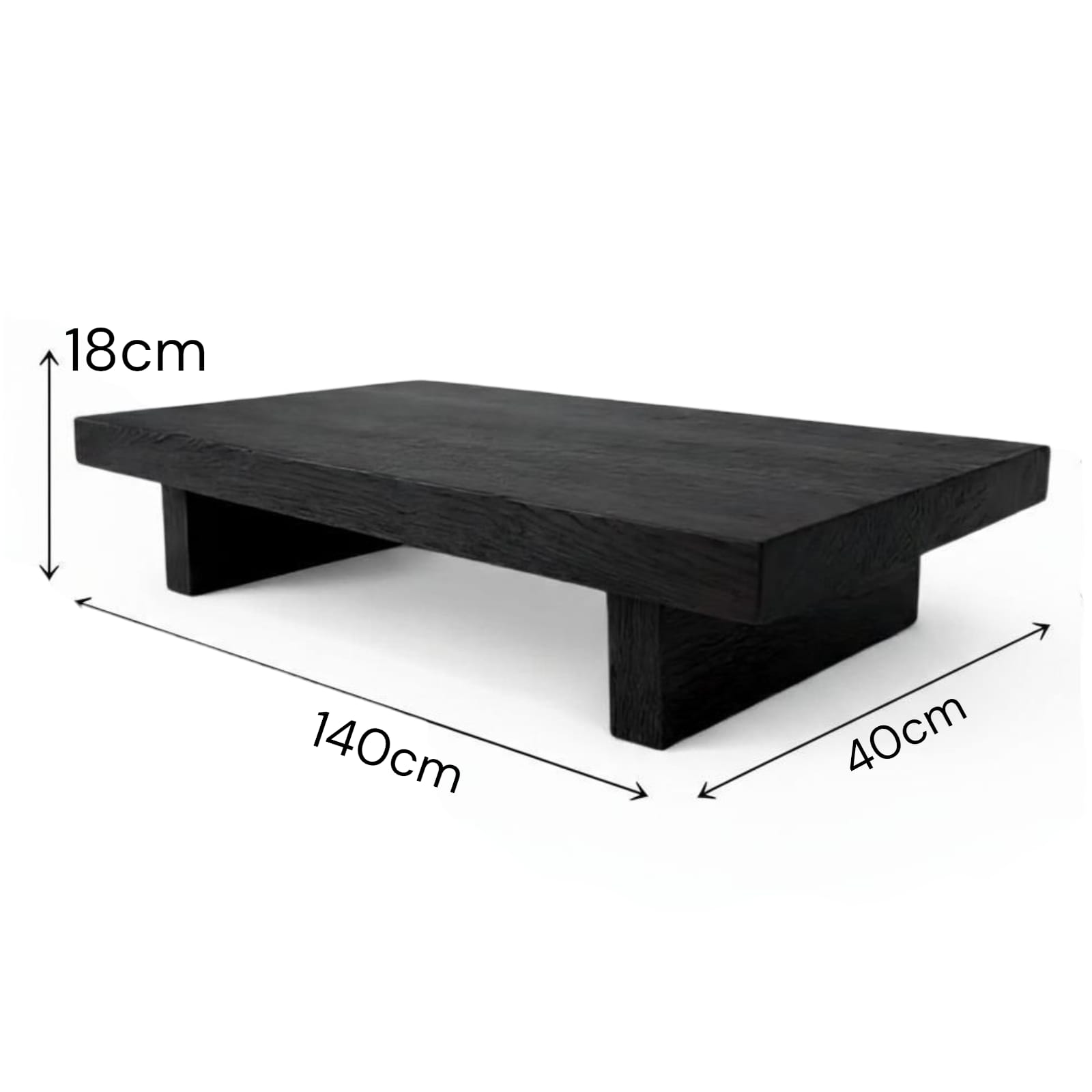 Couchtisch, Tatami-Tisch aus Massivholz Eiche , bodenlanger Bodentisch, niedriger Zen-Tisch, Balkon-Couchtisch mit stabilen Beinen und wasserdichter Tischplatte Schwarz 140cm