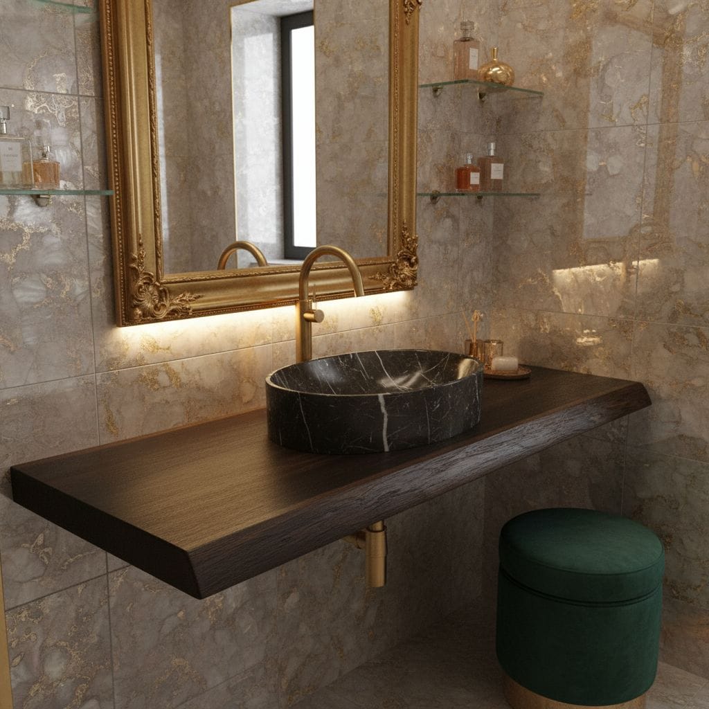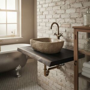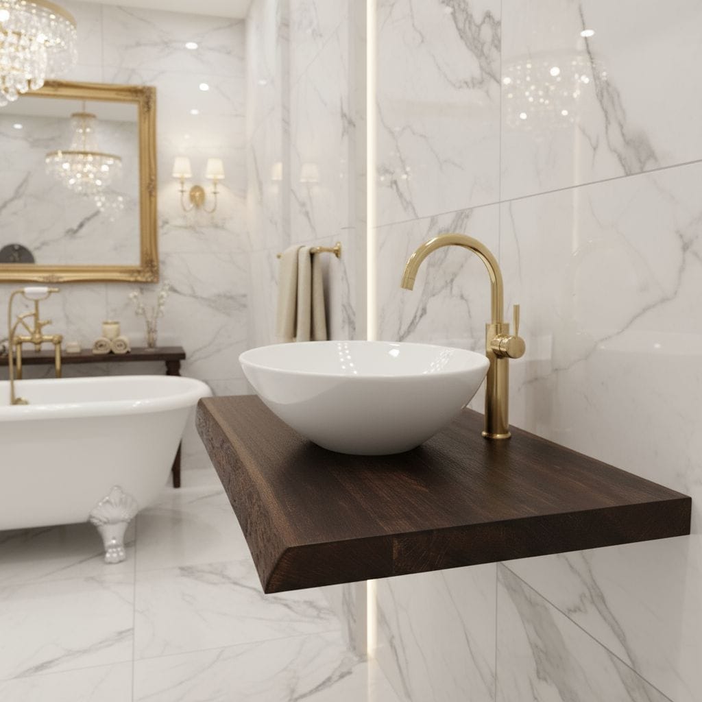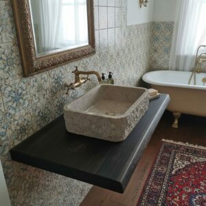 Unsere Platten können Sie nicht nur als Waschtischplatte verwenden sondern auch als Wandregal im Wohnzimmer, Küche oder Flür