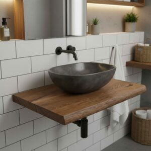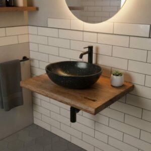 Unsere Platten können Sie nicht nur als Waschtischplatte verwenden sondern auch als Wandregal im Wohnzimmer, Küche oder Flür