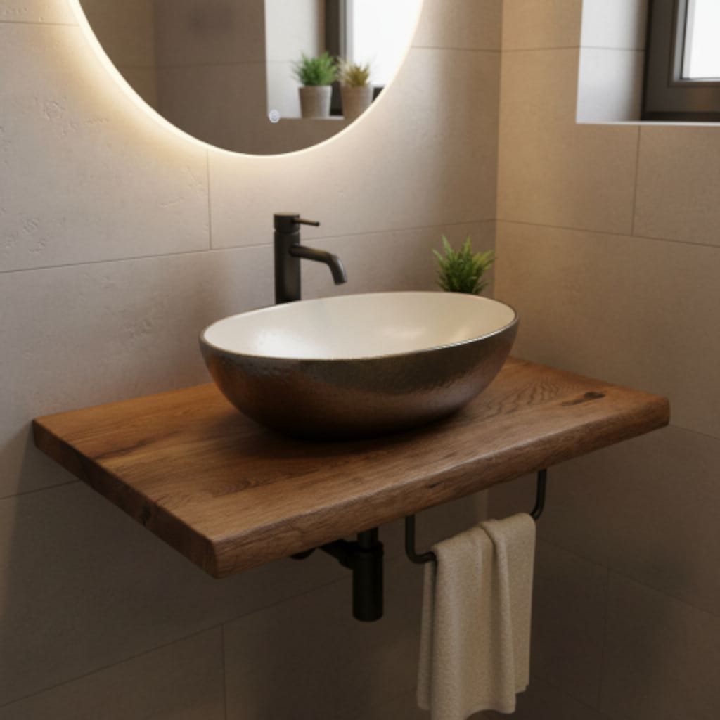 Waschtischplatte Altholz Eiche Waschtischplatte Rustikal Tischplatte Dunkle 70cm