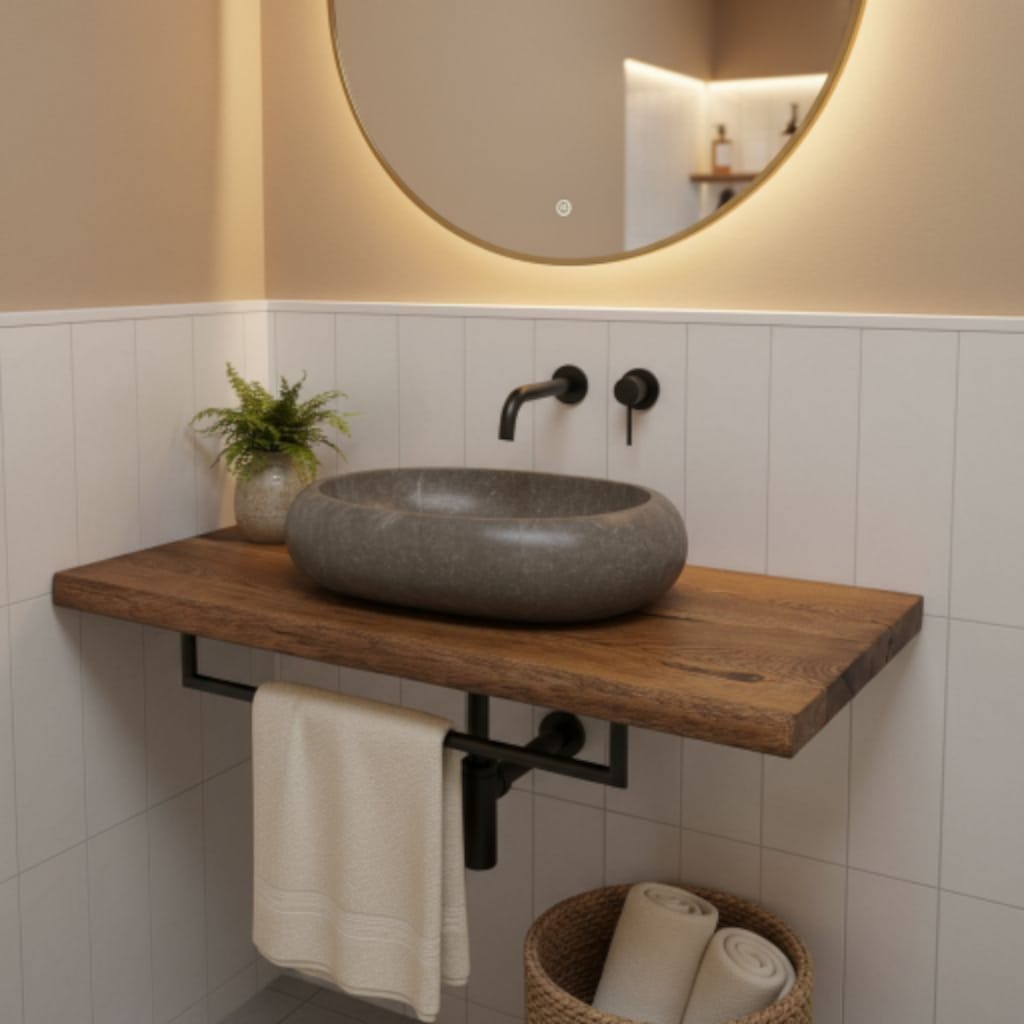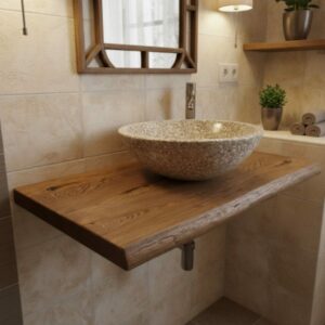 Unsere Platten können Sie nicht nur als Waschtischplatte verwenden sondern auch als Wandregal im Wohnzimmer, Küche oder Flür