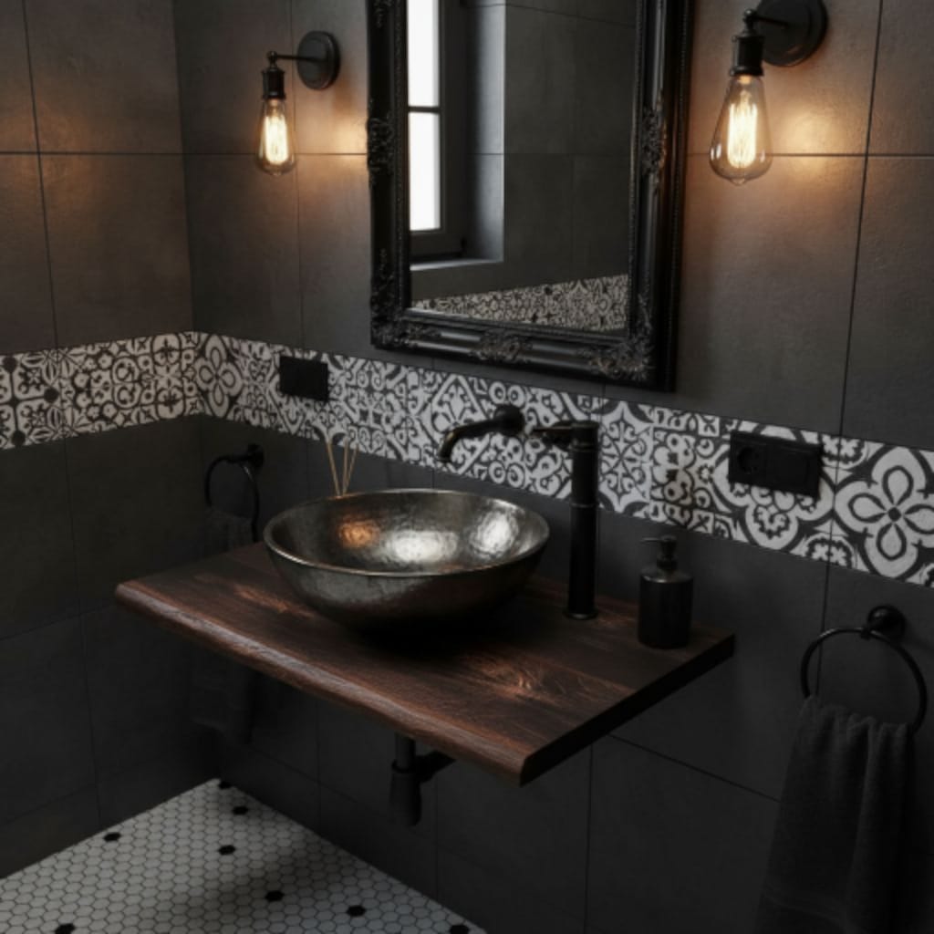 Waschtischplatte Vintage Schwarz Burgunderrot 60CM